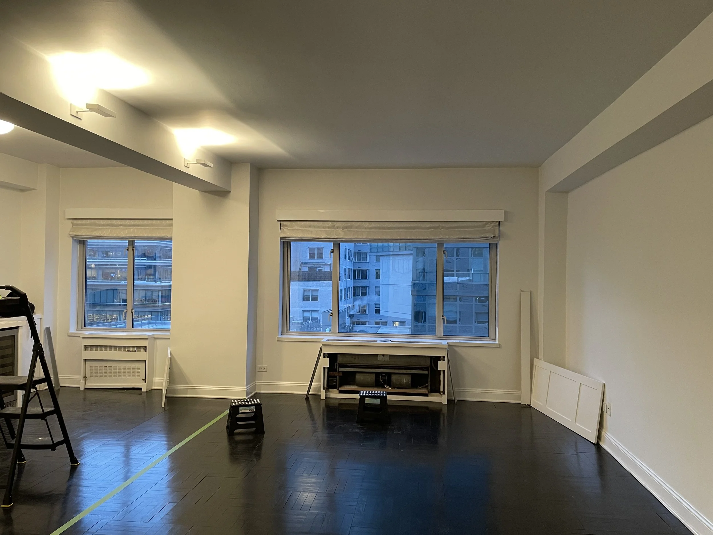 A growing family approached us to transform their recently purchased apartment into a contemporary home that would have clean lines and warm materials. Surveying the existing layout together, we soon realized that the major challenge of this project would be how to achieve a clear and logical flow for the space while working around the seemingly haphazard array of existing columns, risers and beams often found in apartment buildings built in the 1960s such as this one.